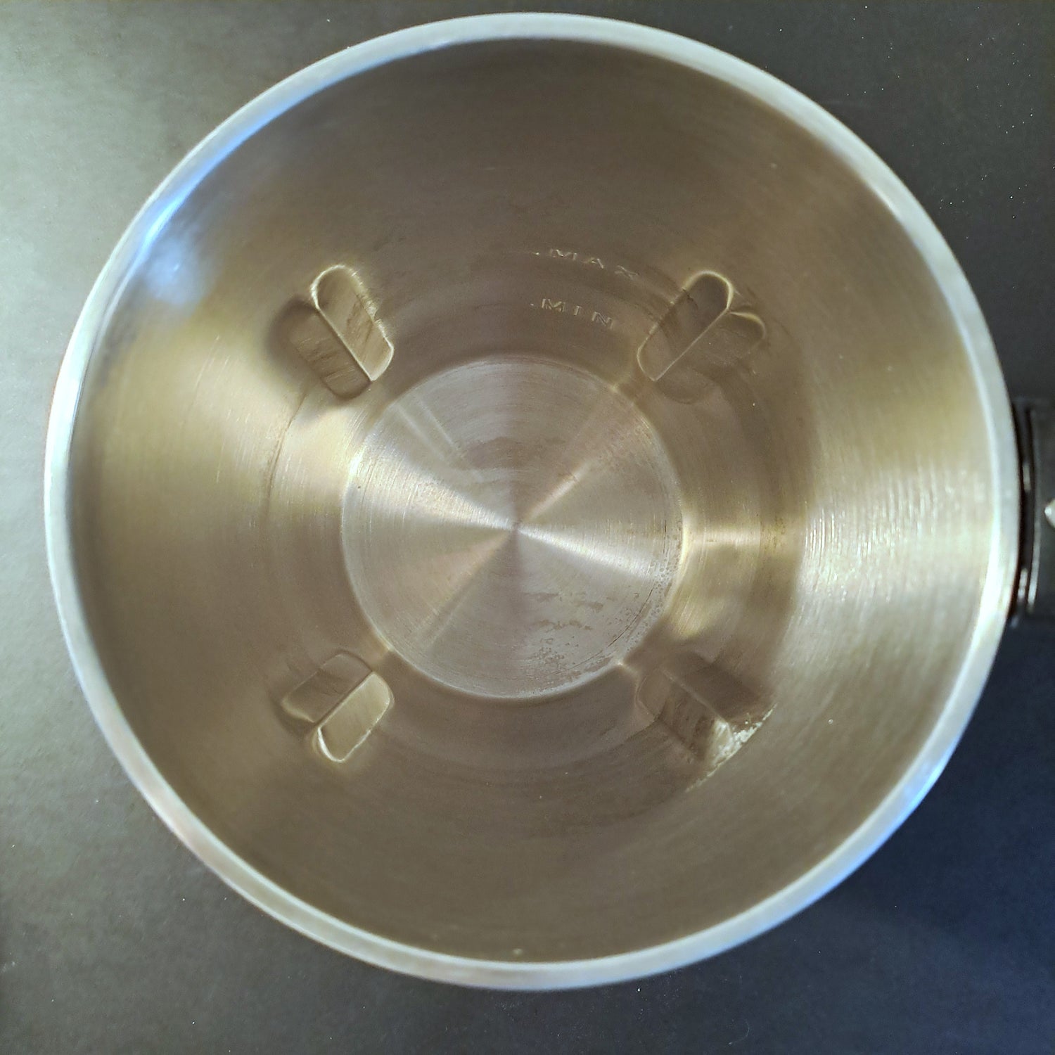 Blenderrummet er lavet i dobbelt rustfrit stål og fungerer som et almindeligt blenderrum. Der er angivet minimum og maximum værdier for den mængde vand, der skal tilsættes, når plantemælken laves. Blenderrummet er hygiejnisk og nemt at rengøre.